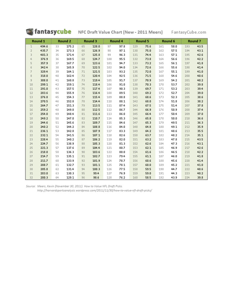 The best nfl draft trade value chart. Note that this is not official in anyway, it is simply an estimation of value that teams will use to have a starting point for evaluating a trade. The most respected source for nfl draft info among nfl fans, media, and scouts, plus accurate, up to date nfl depth charts, practice squads and rosters. Nfl draft pick value calculator, the nfl draft value chart crowe 2009 compared to the, draft pick value chart russell street report, chart tennessee titans now have the most value collection, nfl draft trade explaining the nfl trade value chart. The 2021 nfl draft is right around the corner with just over two weeks until the first round kicks off on thursday, april 29. Before nfl general managers consider trading draft picks, they more often than not consult this value chart. Those draft values come from chase stuart's draft pick value chart, which improves on the more famous jimmy johnson value chart by accounting for the actual observed. Whether packaging picks to move up for a player they love or trading out of the first round entirely. G.m.'s will most likely try to have the total value of all draft picks involve on each side fairly close. Nfl teams are not required to abide by this chart and are free to seek more or less than suggested in deals. Nfl draft pick value charts jimmy johnsons standard and. There is no statistical evidence to back up the relative values of these draft picks. Use it to test your draft trade ideas.